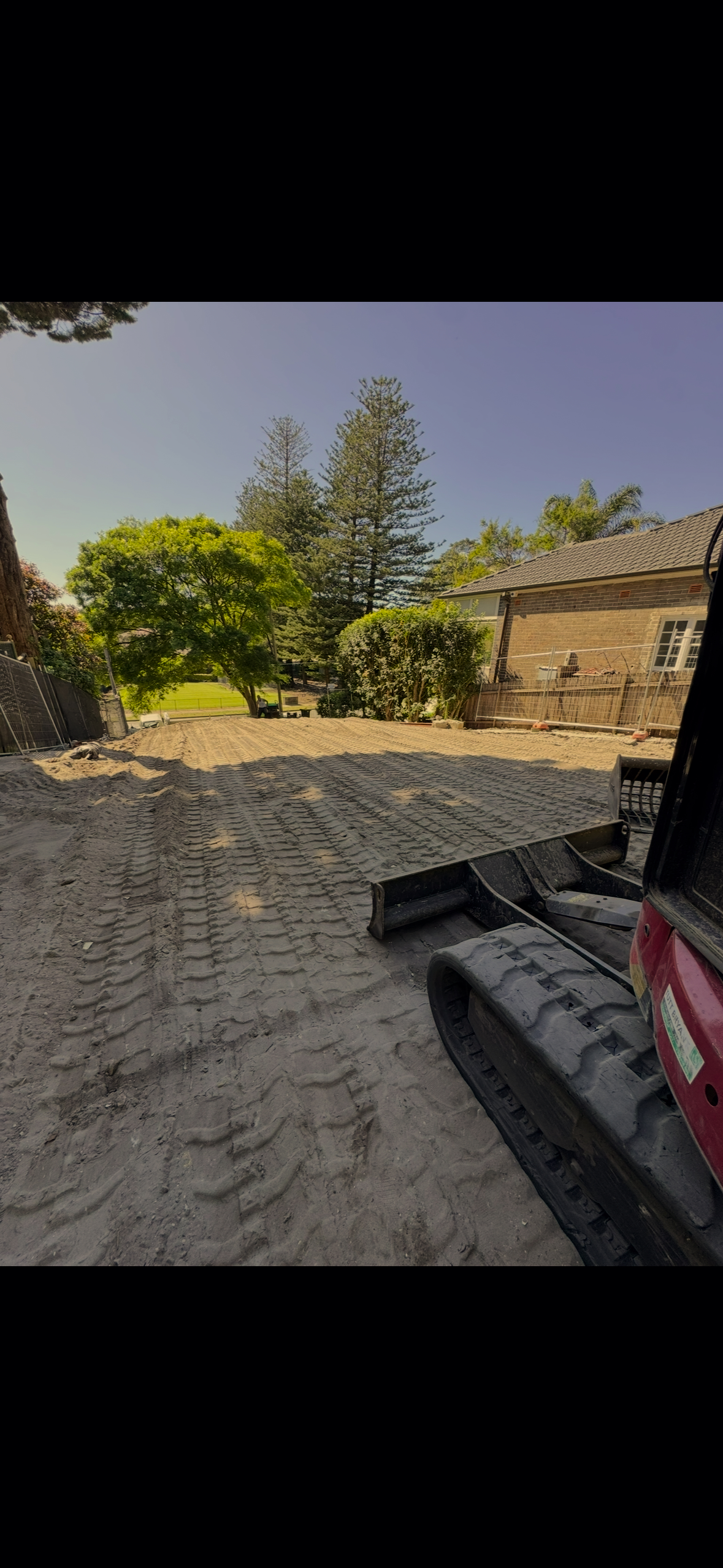 Final trim and ground preparation completed by Shire Civil as part of bulk earthworks for a residential construction site in Sydney.